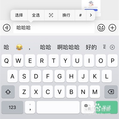 1、首先唤醒微信键盘,在聊天框中打几个字。